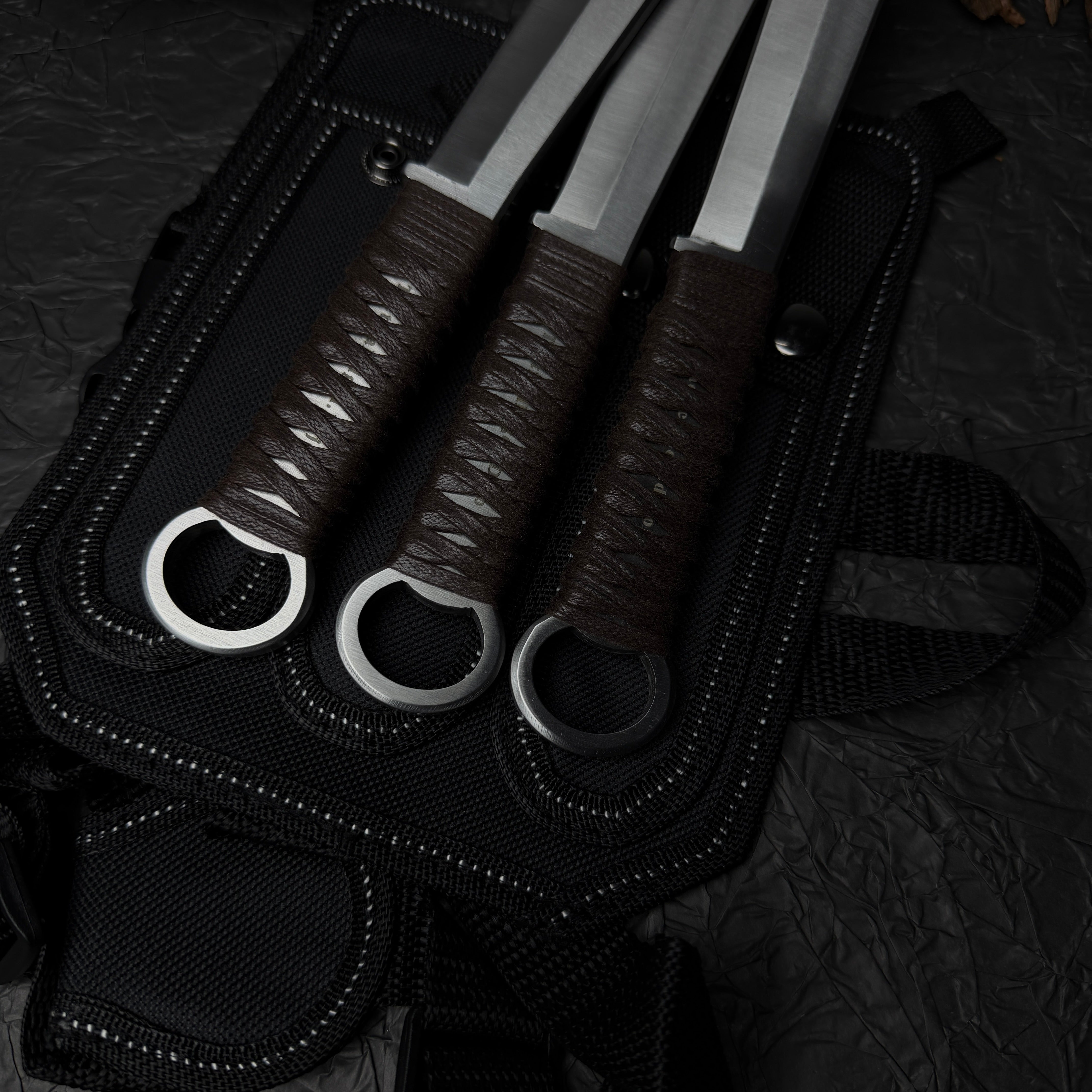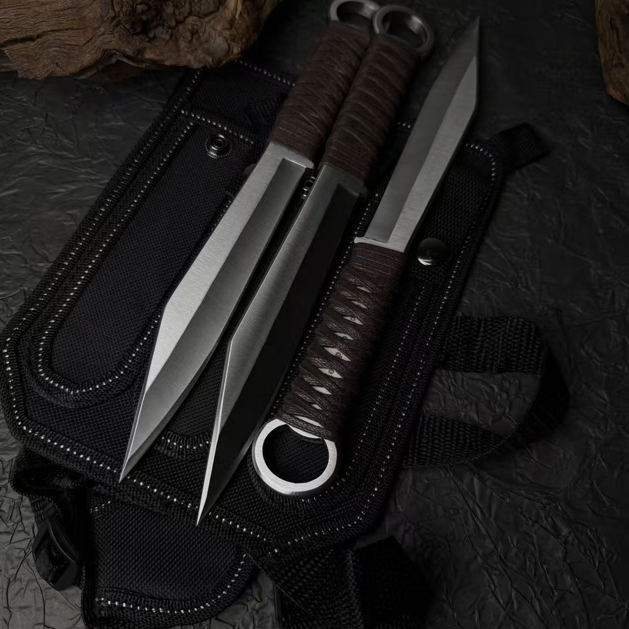 Traditional Chinese throwing knives are uniquely distinctive, with primary techniques divided into half-spin and straight-throw methods. However, the way they are carried and the methods used to control the knives differ greatly from mainstream throwing styles. Chinese throwing knives rely mainly on force control (li kong力控), using the body's power generation to manage the knife's rotation during flight.