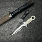 The ZheLiu set comes in two finishes — Stonewashed Grey and Steel Silver — and includes three knives along with a custom back-carry sheath exclusively designed and molded by TEDOJO. The sheath holds all three knives securely while allowing for fast, fluid draws during training or display.