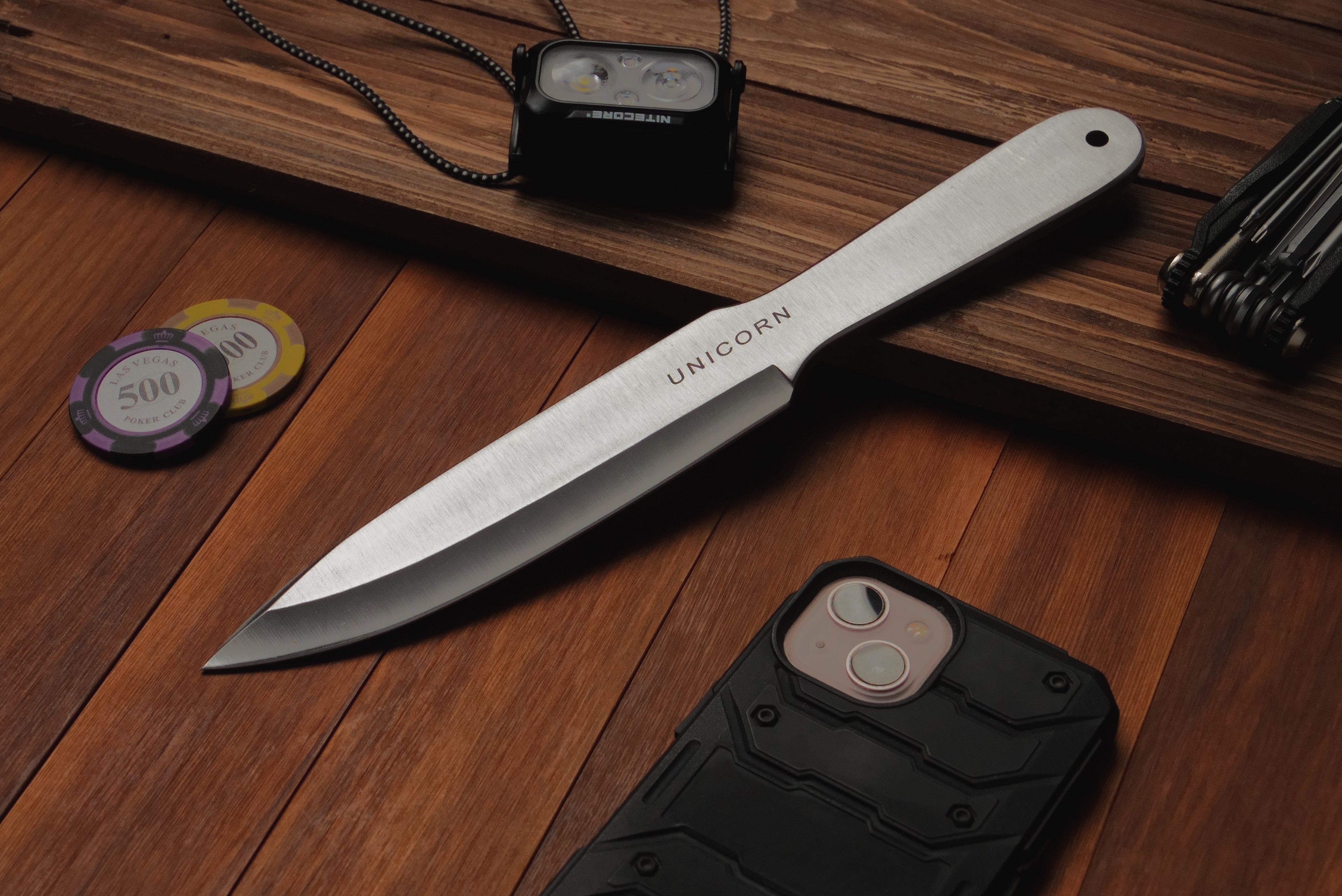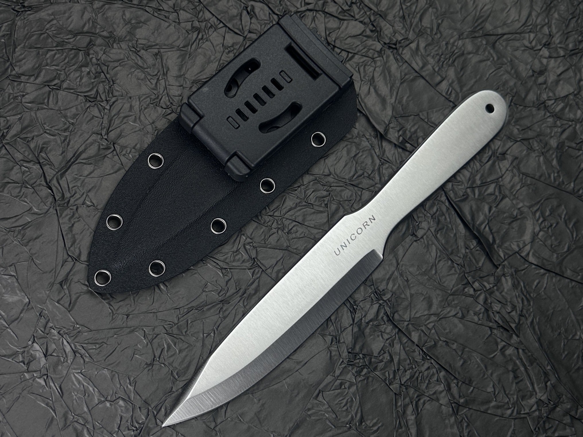 At 10.24" long and 10.23 oz (290 g), the full-tang Unicorn-1 offers superior balance and control for all throwing styles—no-spin, half-spin, full-spin, and beyond. -