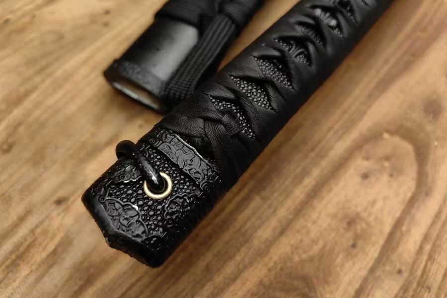 Black stone-texture lacquered saya with faux ray skin