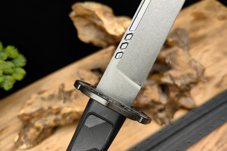 The stainless steel guard is titanium-plated for extra toughness and a premium look, while the G10 handle ensures a secure, comfortable grip in all environments—wet, dry, hot, or cold.
