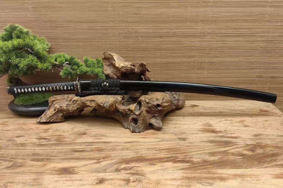 The buffalo-horn lacquered saya adds a luxurious finish and excellent wear resistance, completing the sword’s elegant yet powerful presence.