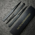 Features a distinctive cube-patterned G10 handle that enhances grip, comfort, and durability—preventing wear and slippage during high-impact throws.